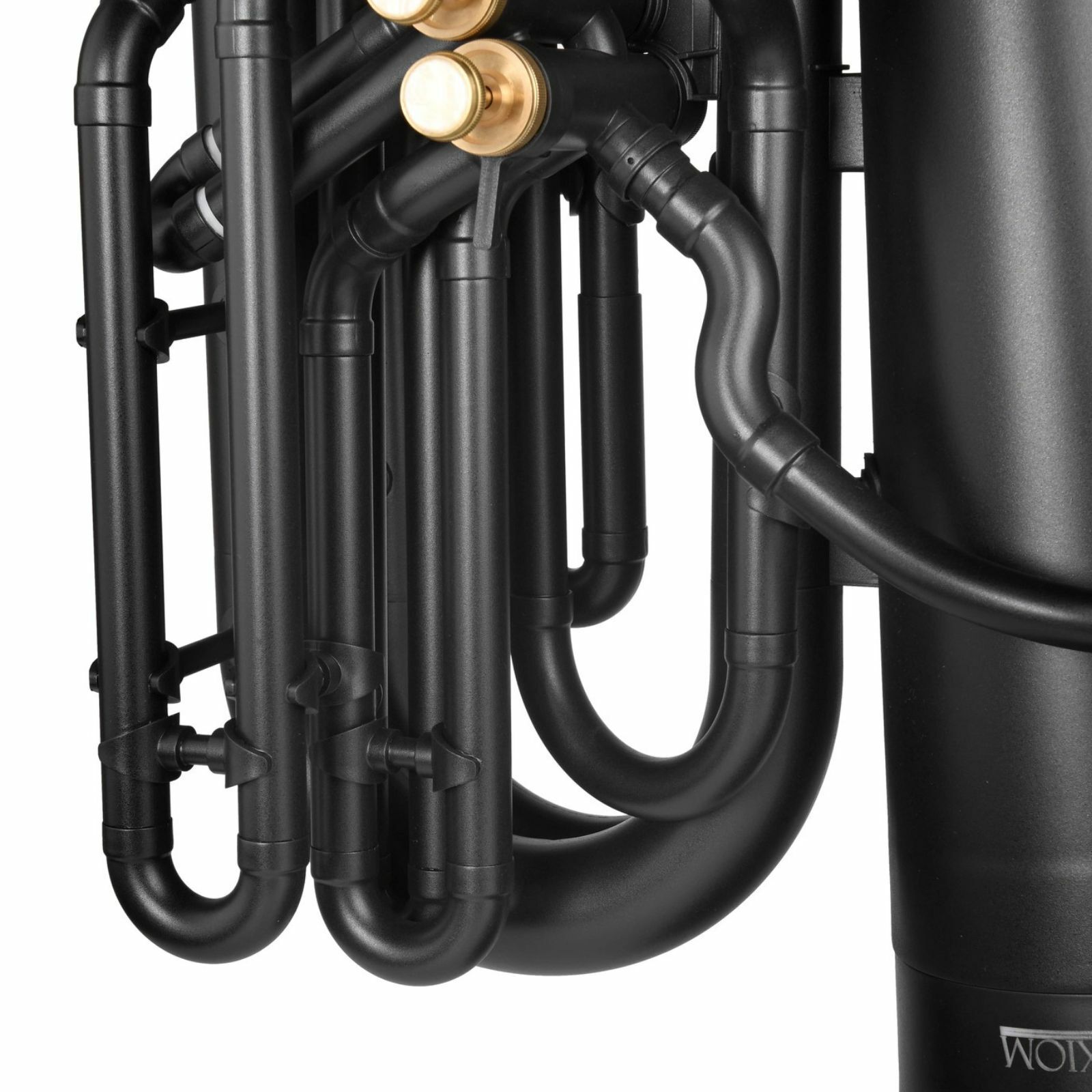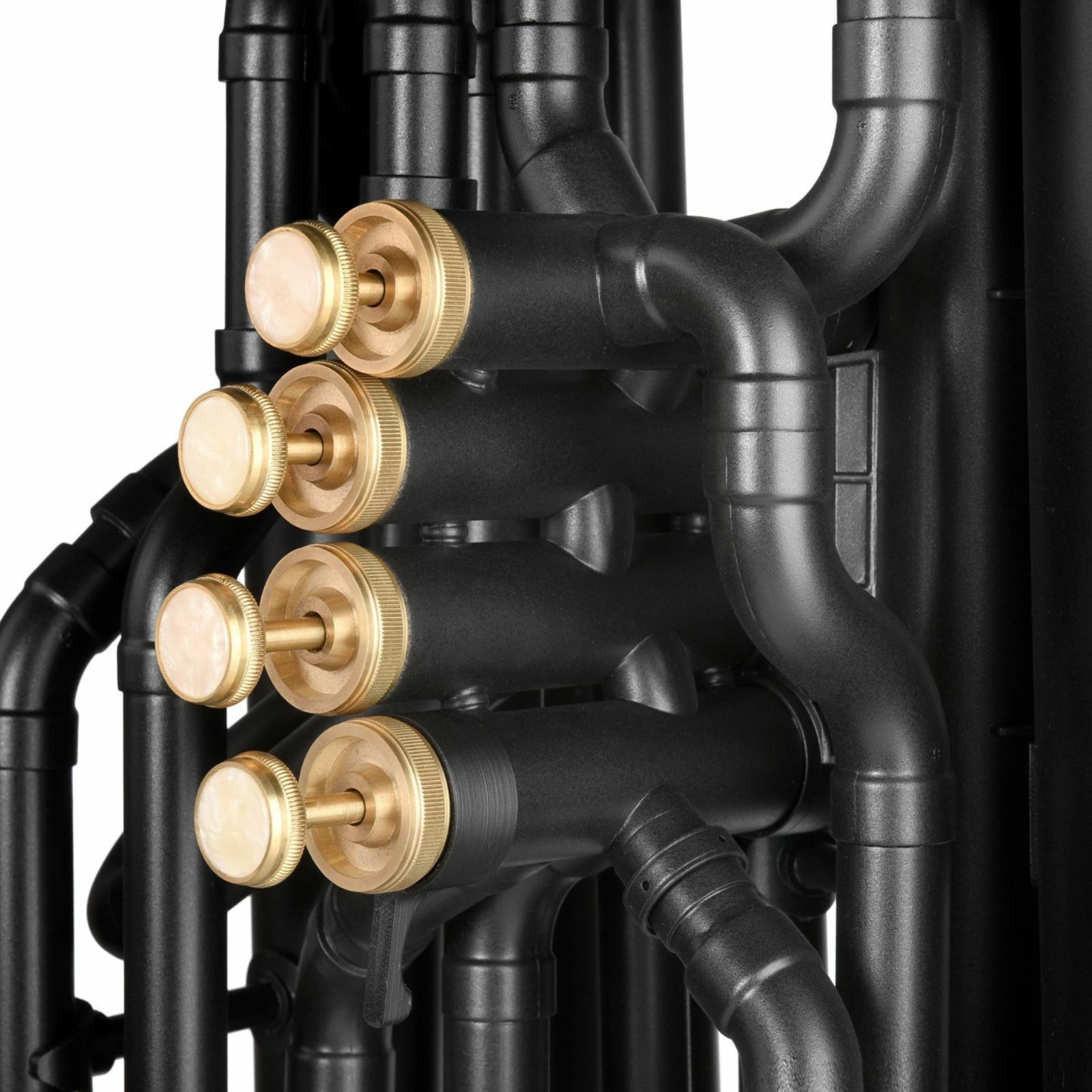 At less than 5kg, this tuba is approximately half the weight of a full brass equivalent, making it far more comfortable for extended rehearsals or marching use. Finished in an attractive matte black, it also features four piston valves—much easier to maintain than the rotary valves found on other plastic tubas, and far more reliable in school settings.