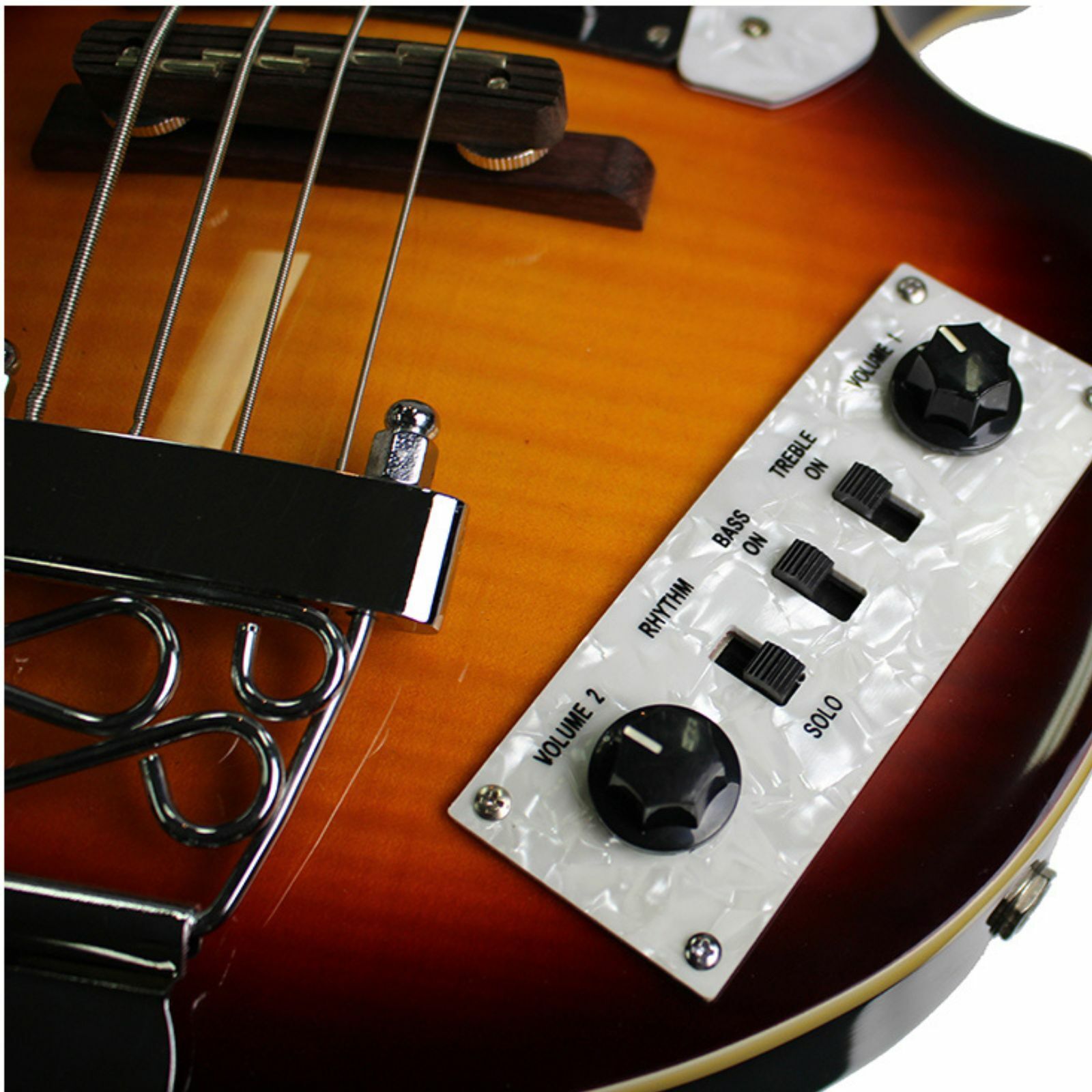20 December 2019When I first got this bass out of the box, I was amazed with how well the bass looked. The sunburst colour is spot on, the archtop bridge and pickups are identical to a Hofner bass and the pickguard has the authentic white pattern. The control panel is awesome and the electronics do the job making the bass have a great sound. The playability is great and it sounds a lot like an a Hofner bass which would be the goal here. Only problem I have had is raising the bridge which is a difficult task as it is very tight to turn the screws and it can take some of your skin off your fingers! All set aside I would highly recommend this bass to anyone looking for a budget Beatle bass.