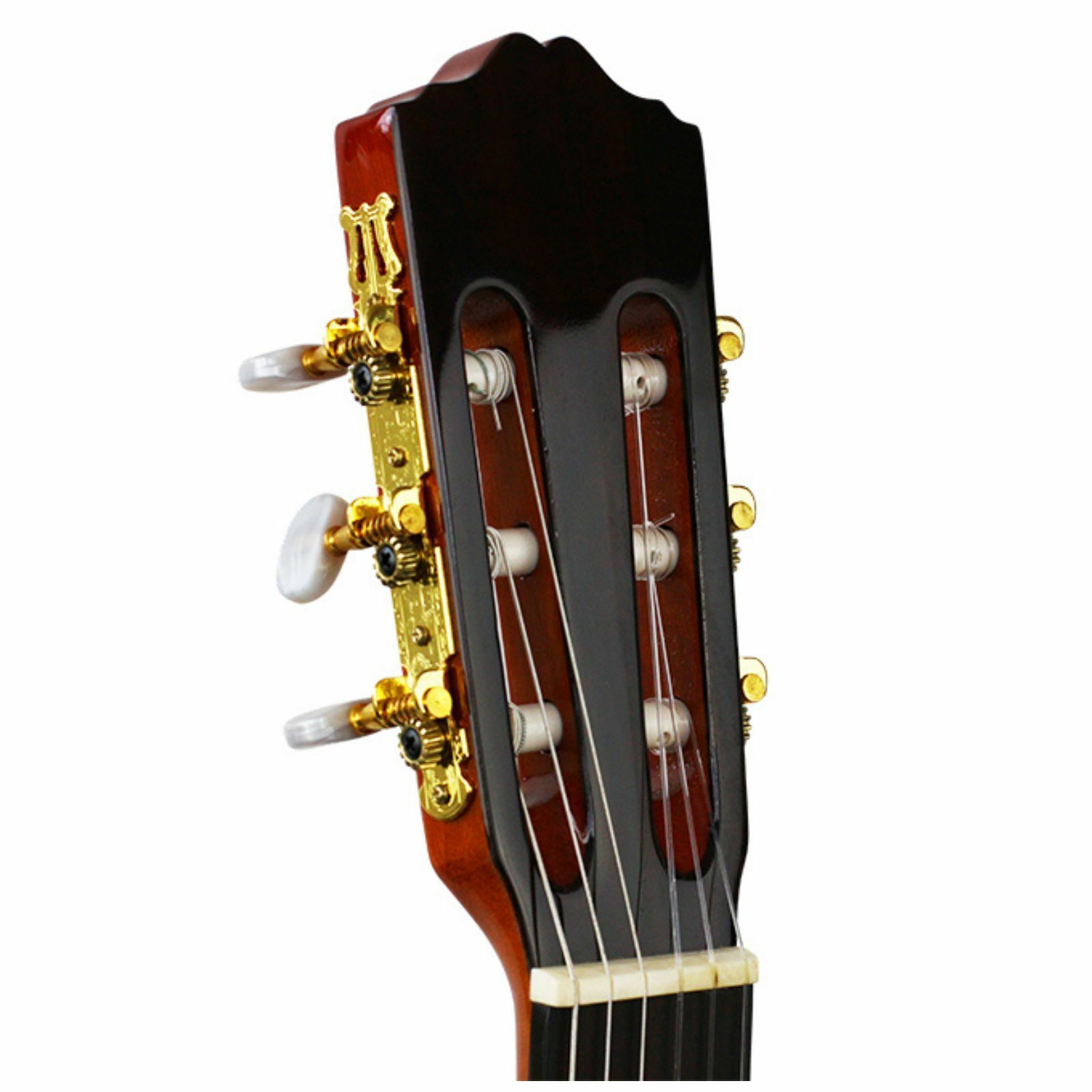 Chrome machine heads offer stable, precise tuning, and the full-size classical body provides ample resonance and projection while remaining lightweight.